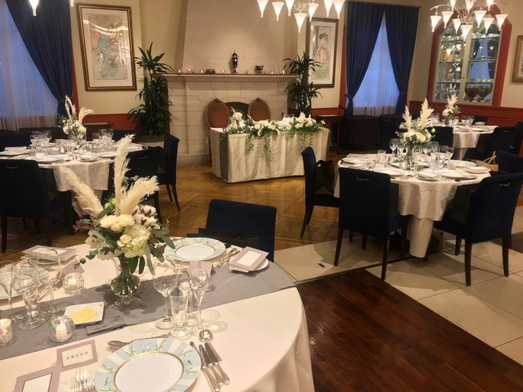 同じ会場でも、テーブルクロス・ランナーやお花の色味で