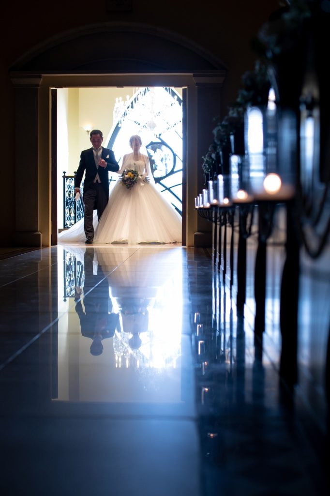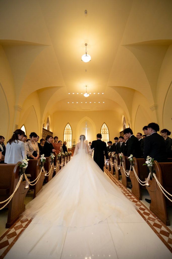 こんにちは! 赤坂ルアンジェ教会写真室のカメラマンです。 本日は、親御様と歩む 【ヴァージンロード】についてご紹介したいと思います。 実はヴァージンロードとは、新婦様が 今まで歩んでこられた人生を表す道と言われております。 親御様は扉が開いた瞬間に 大切な娘がこの世に誕生した日を思い出し 一歩ずつ、一歩ずつゆっくりと歩みながら 娘とのこれまでの日々の思い出を 走馬灯のように思い出すと言われております。大好きな娘とのこれまでの人生を思い出し 中には思わず涙を流される方もいらっしゃいます。 それほどヴァージンロードは親御様にとって 特別な道であり、感動の瞬間でございます。 ヴァージンロードをまっすぐ進み、 新郎様の前までたどり着くと 「これから私の大切な娘をよろしく頼みます」 そんな意味を込めて新郎様へ引き渡します。