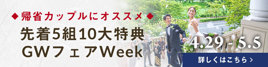 赤坂ル・アンジェ教会も【GWフェアWEEK】として 通常のフェアよりも更に充実した 《BIG特典》もご用意しております♪ 普段はご遠方にお住いで なかなか実際に式場見学に足を運ぶことが難しいおふたりも ぜひこの機会をご活用くださいませ★ また、昨今のコロナウイルスの影響により 変わらず帰省が難しいおふたりには オンラインのご相談もお承りしております。