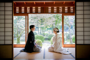 日本庭園の建物を活かした自然な感じのお2人のお写真も素敵です