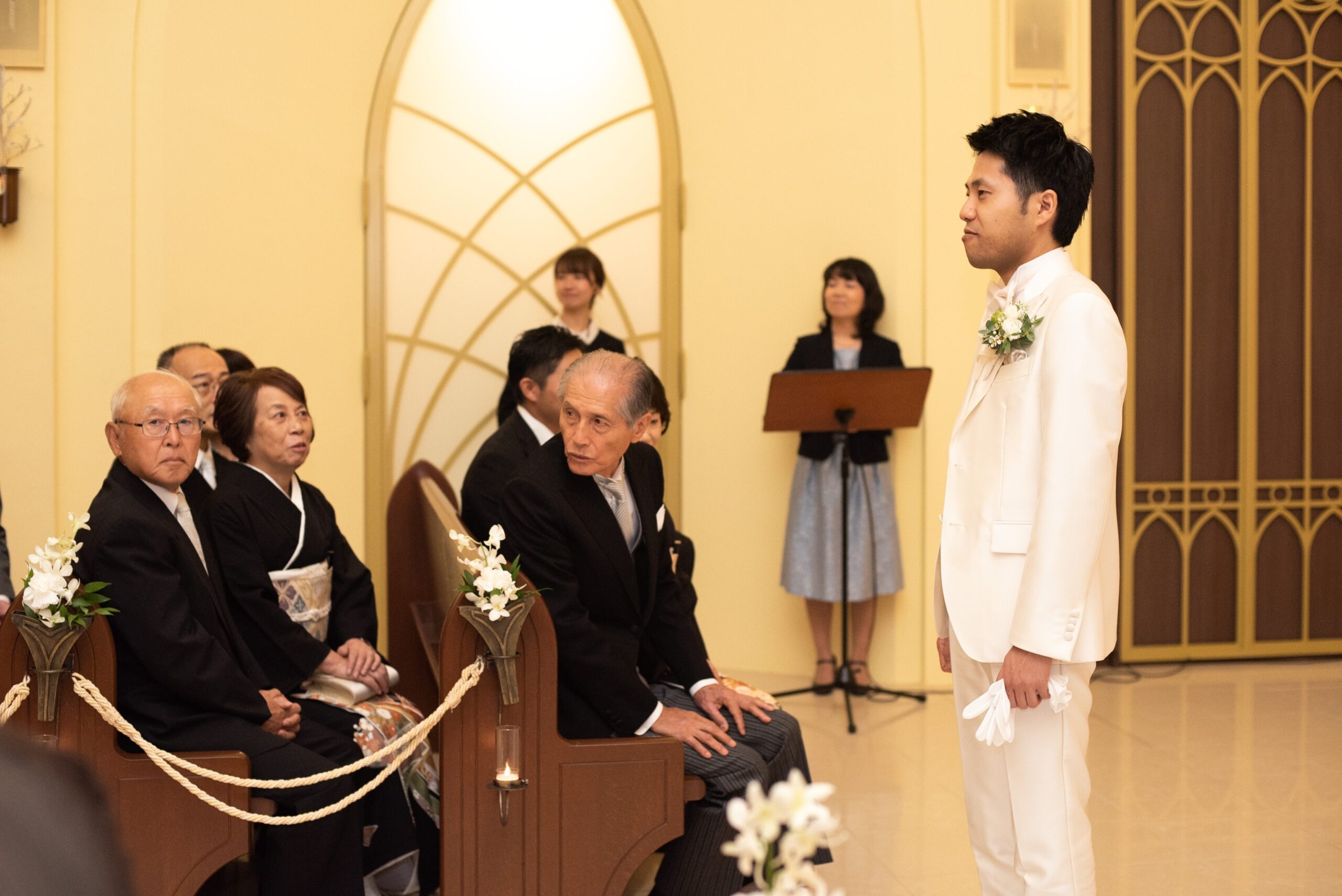 その後、エスコートの方より、ご新郎様へご新婦様の手が渡り、