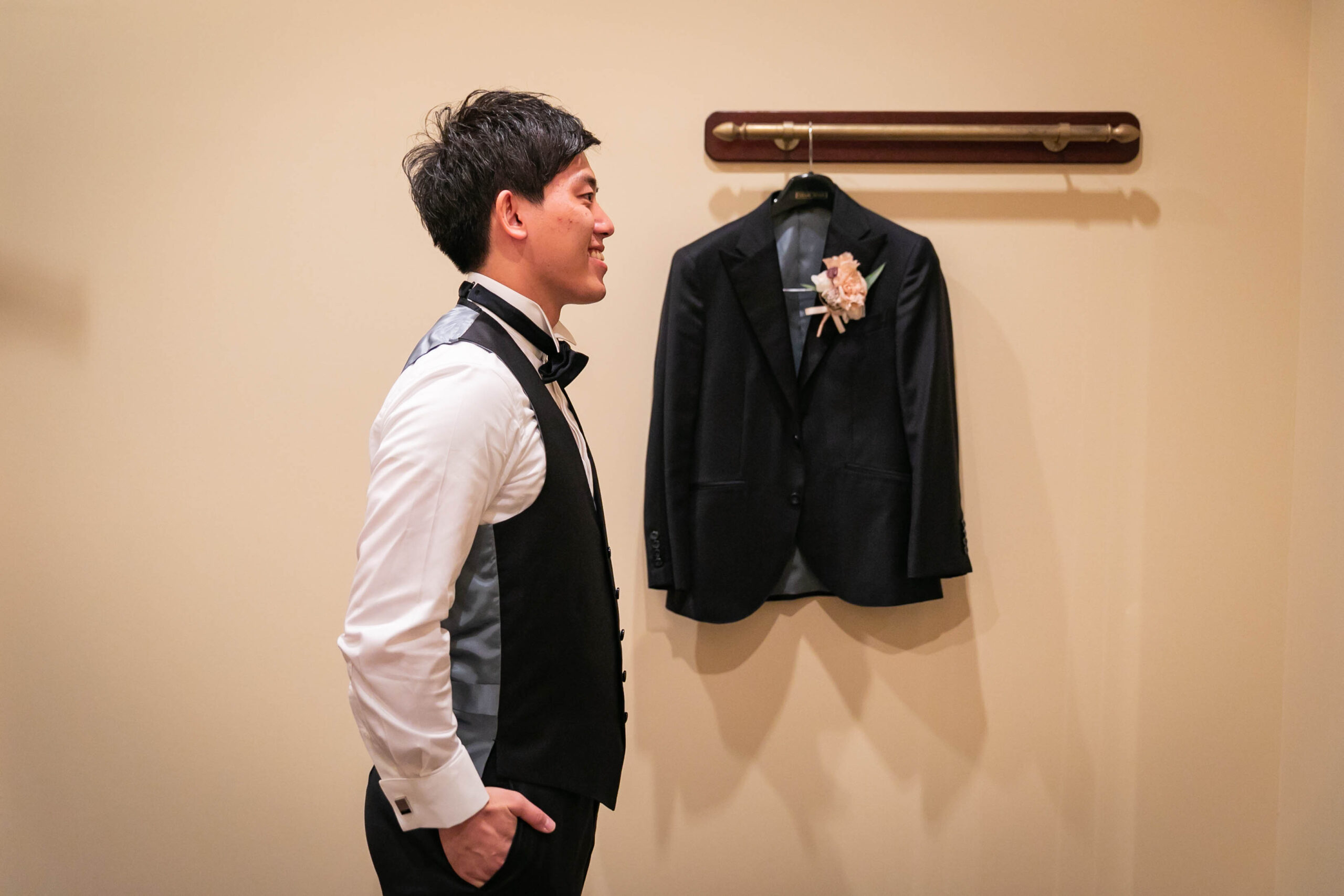 一足先にご新郎様のご準備が整ったようです!