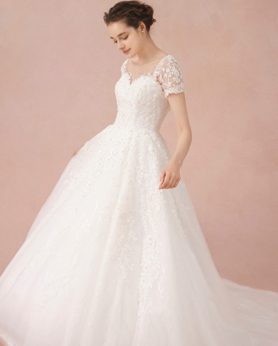 ビジューが輝きを放つスイートを叶える半袖マリエに、
