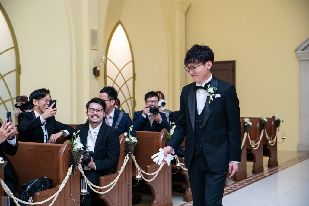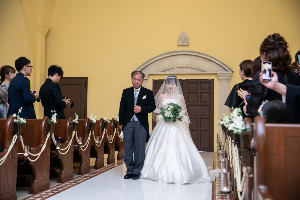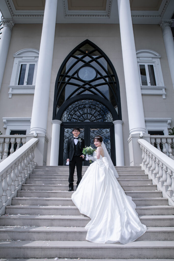 本日はとてもお天気の良い日の挙式をご紹介いたします