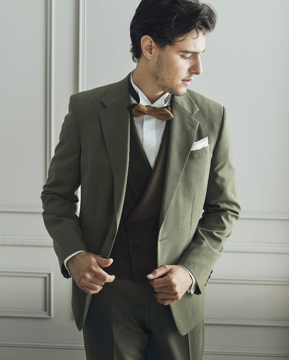 カラードレスに合わせてスタイリッシュなタキシードを着たい方、