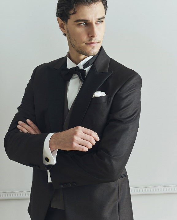 DORMEUILの中でも特に人気のあるアマデウス生地でお仕立てした高級感漂うタキシード