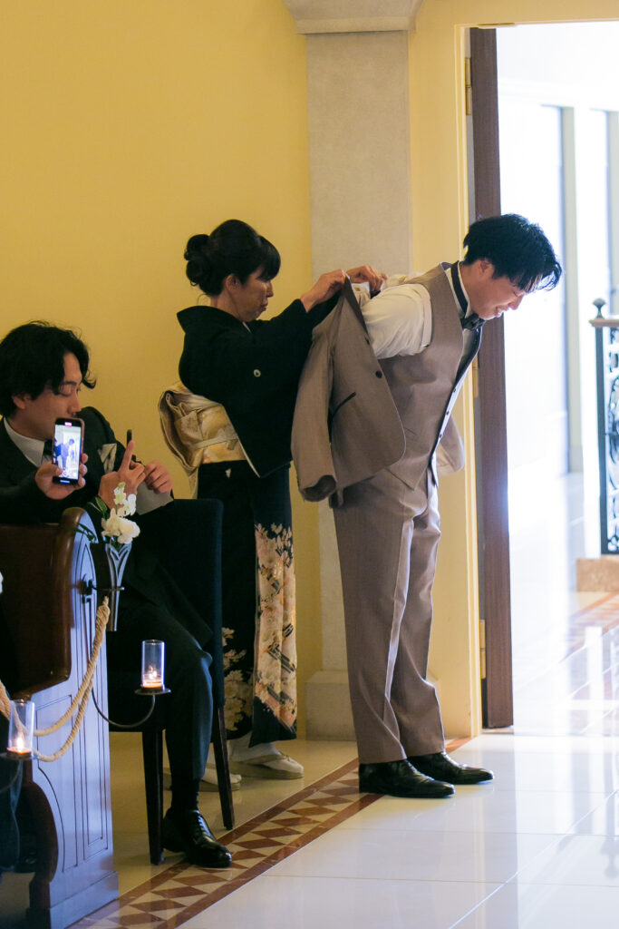 ご新郎様はお母さまからジャケットセレモニーを