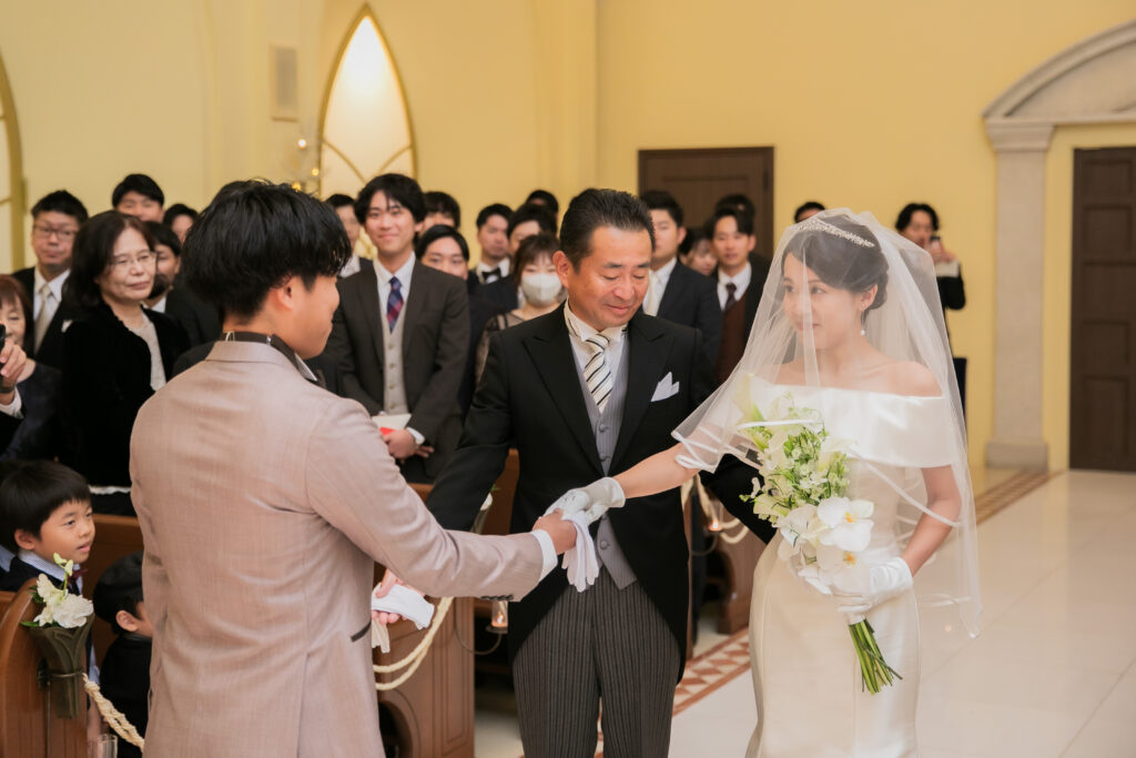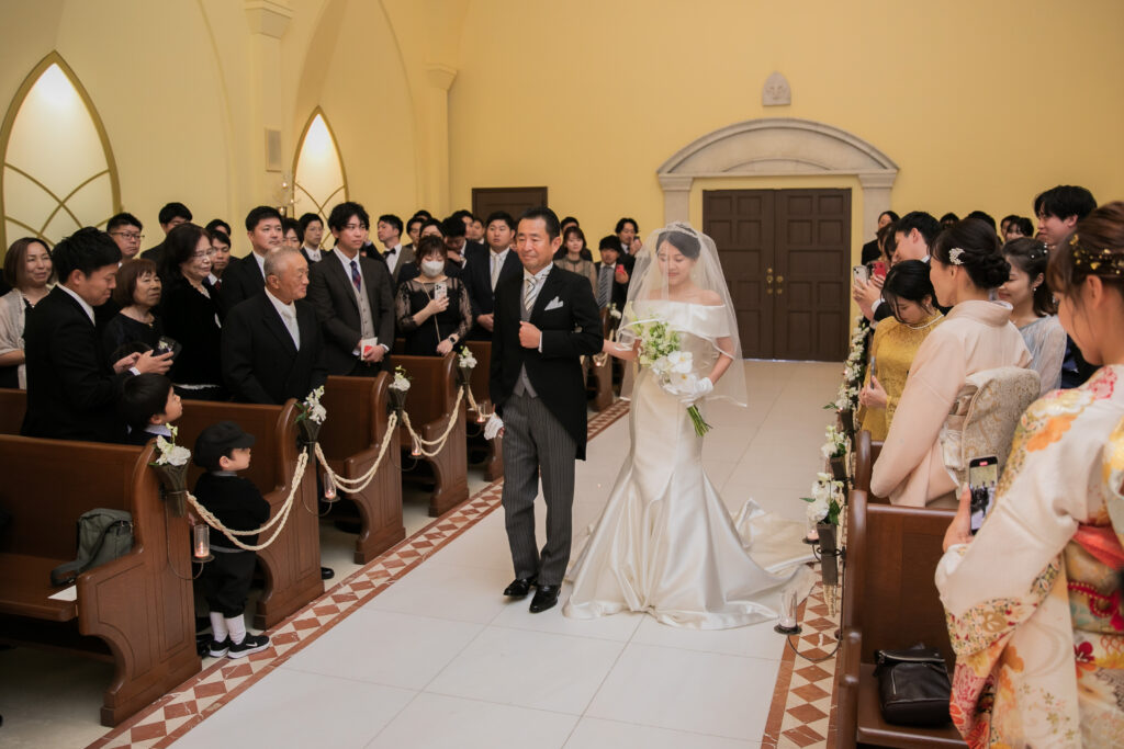 ご新婦様はお父様のエスコートで入場です