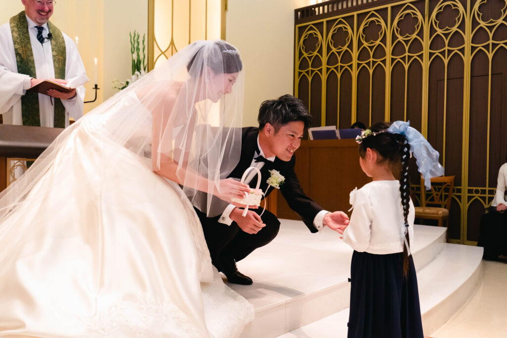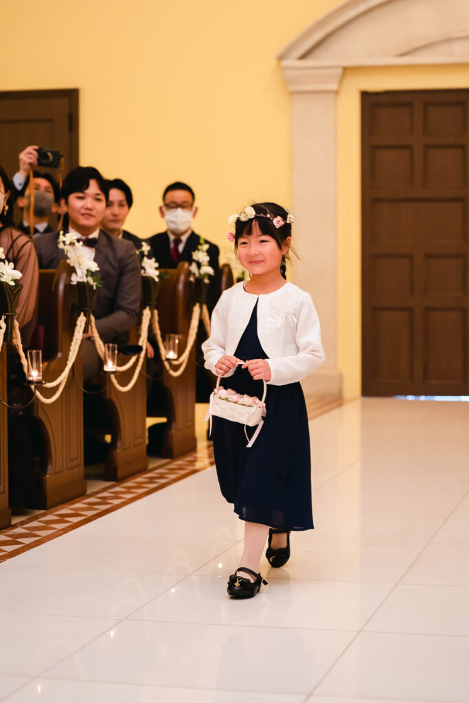 指輪はかわいいリングガールちゃんに運んでもらいました
