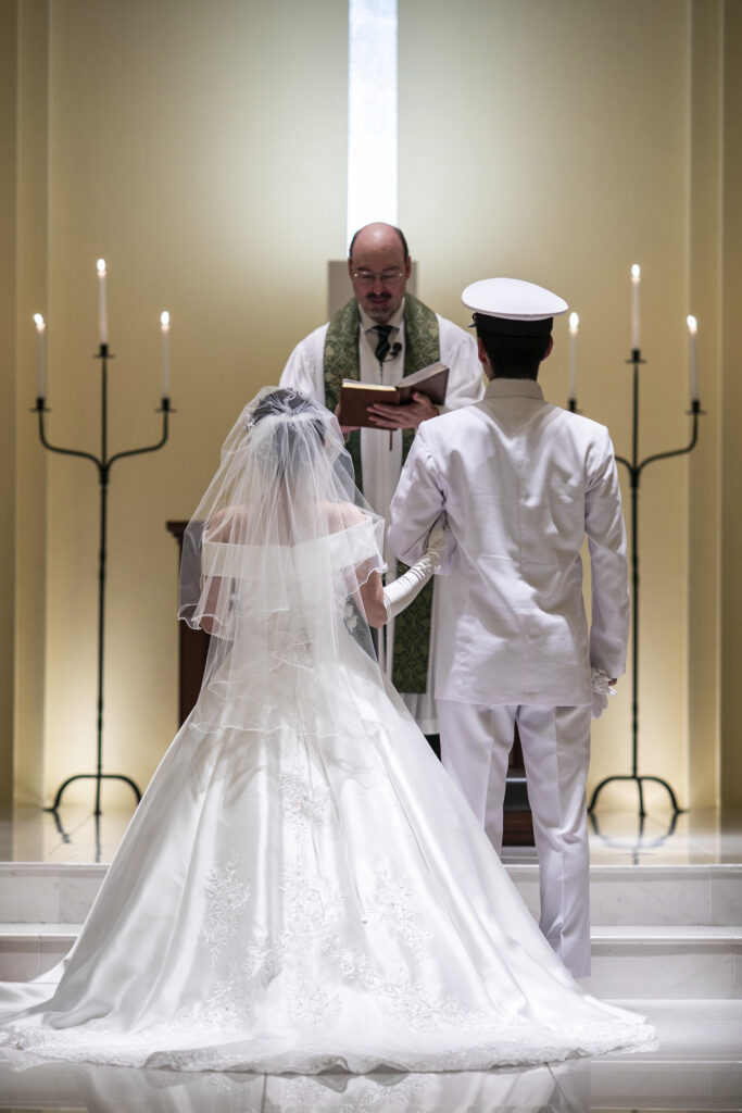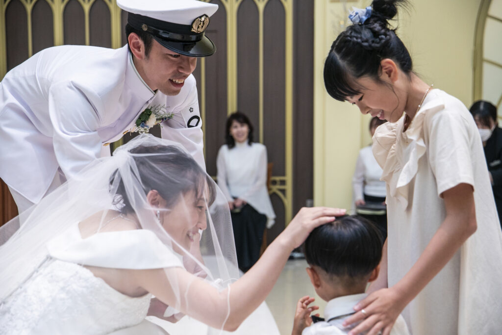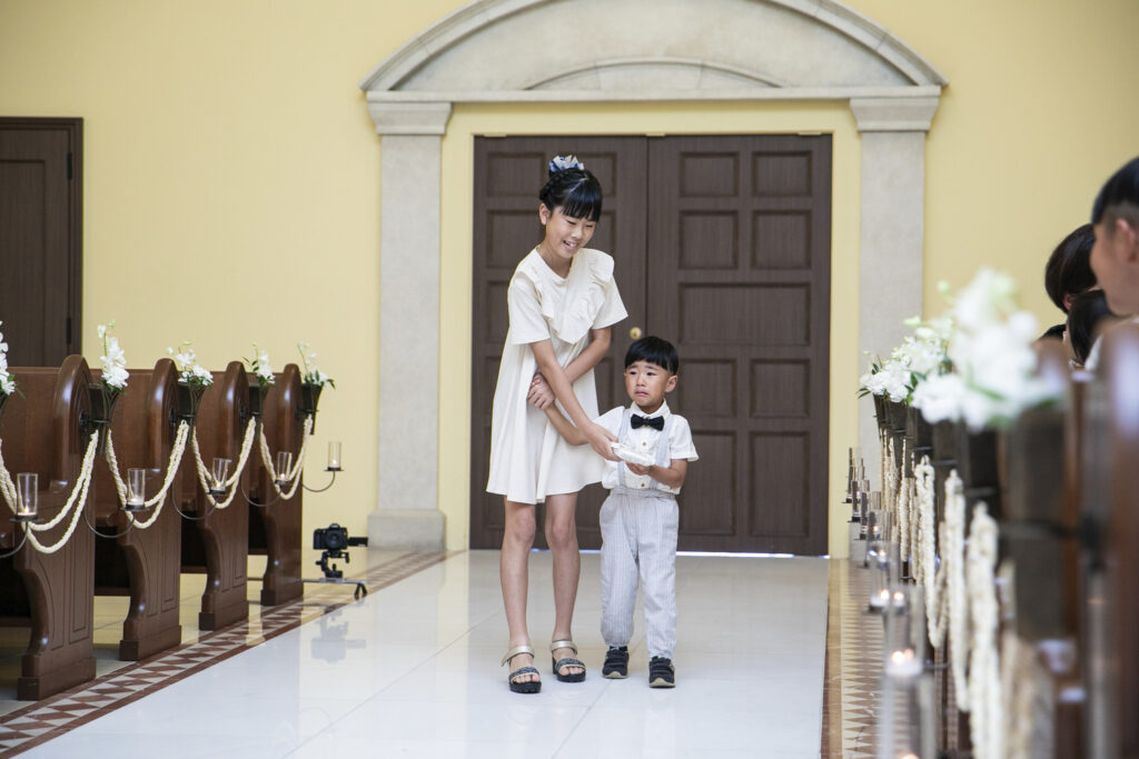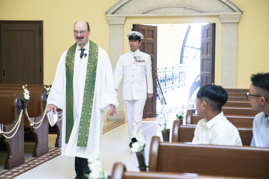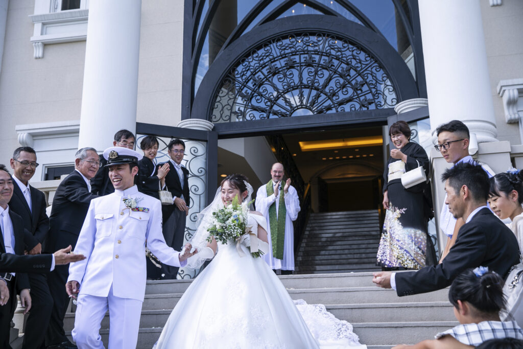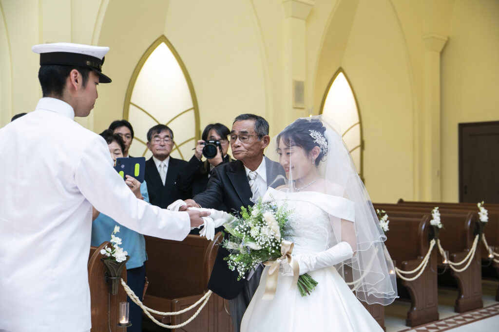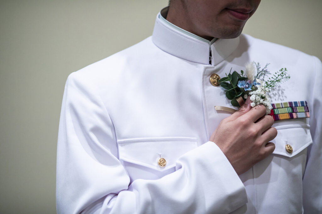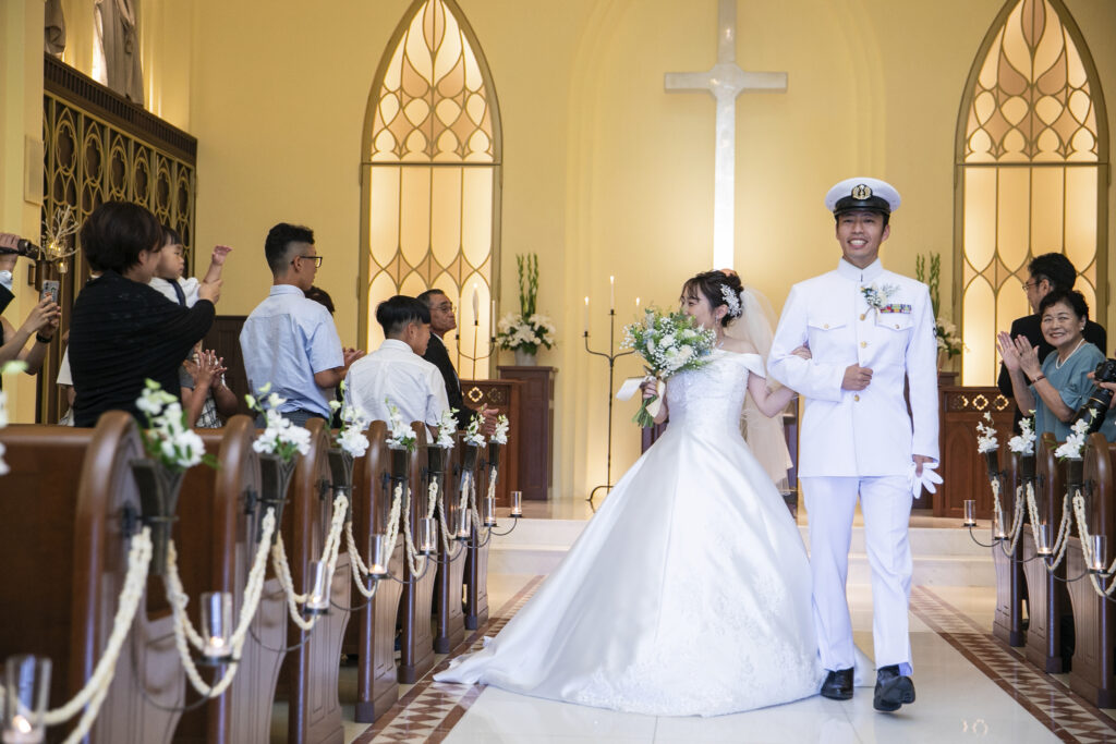 本日は制服で挙式を入場された新郎新婦のご様子をお届けいたします